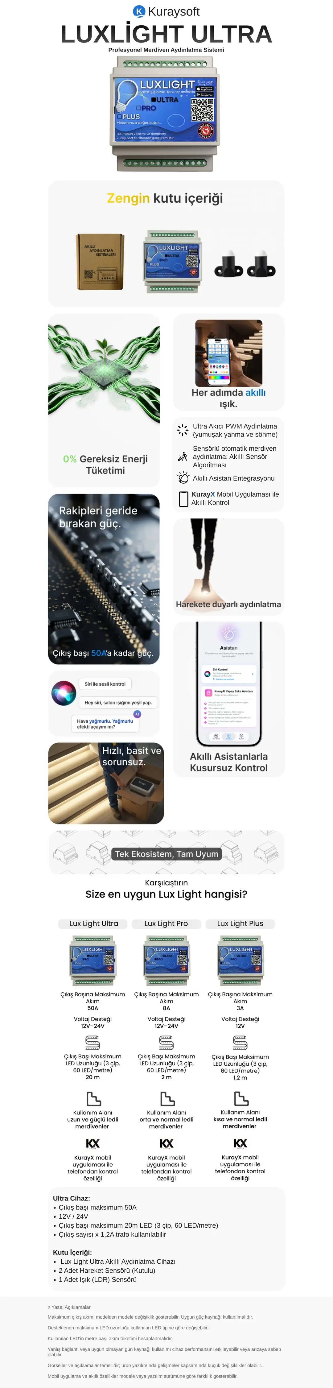 Luxlight Ultra Akıllı Merdiven Aydınlatma Cihazı - Sensörlü & Mobil Uygulama Kontrollü (2-29 Basamak)